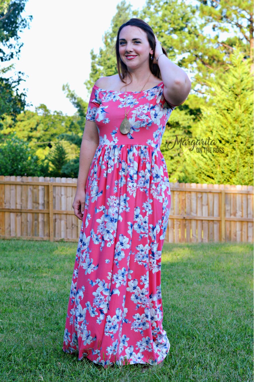 I love the comfort and look of maxi dresses, and the off the shoulder look from Mama Cassie is everywhere this summer. Who knew it would be one of my personal favorites of my me made pieces?