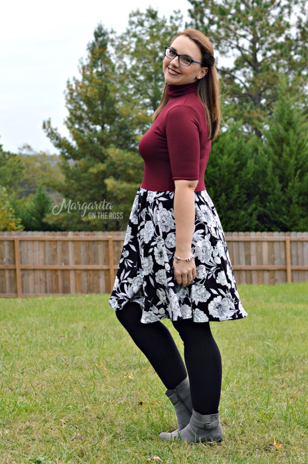 The Rory Dress and Skirt is a turtleneck bodice with a gathered circle skirt. A gathered circle skirt, you say? Why yes. This was such a great design feature to have a gathered Skirt with the fullness of a circle skirt.