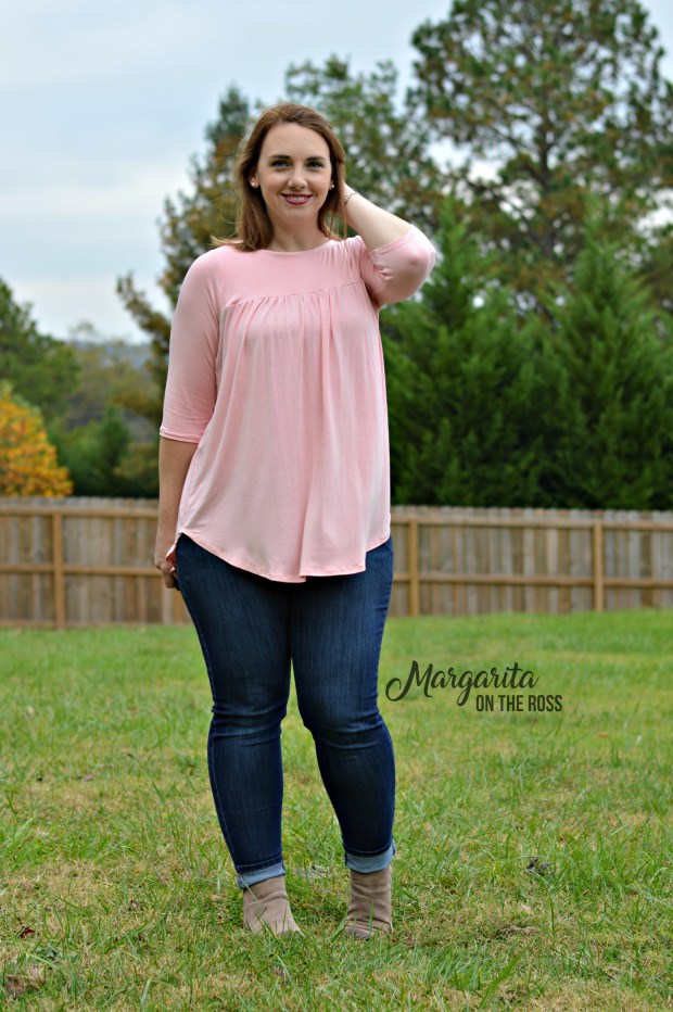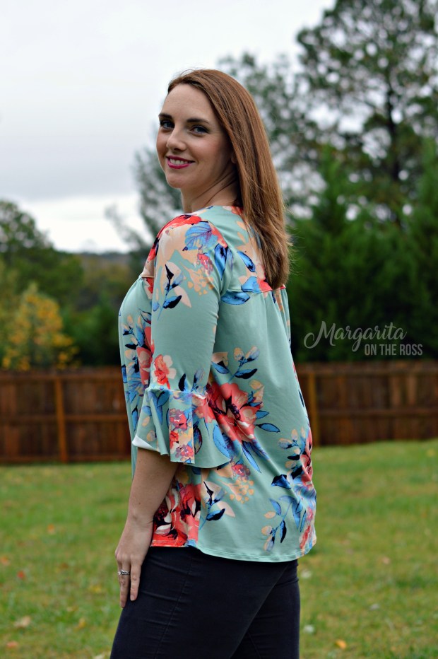 I usually avoid flounce sleeves in boutique style tops. But this hits at a perfect length to still be functional for me. I wore this top to work last week and was able to treat my patients without any difficulty. Talk about a win!