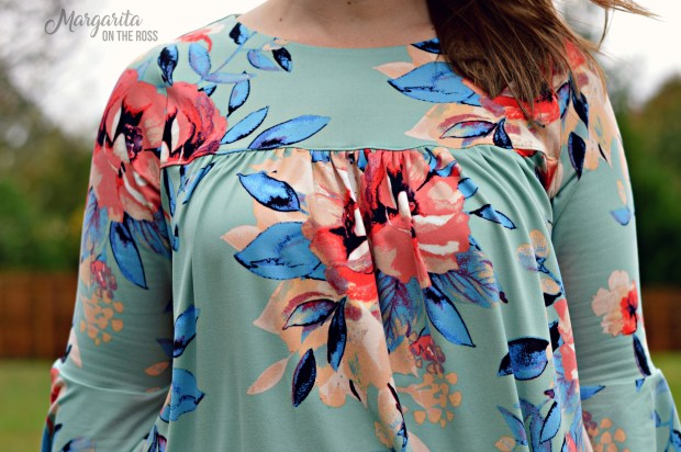 This fabric is my October Bee Box subscription from Vinegar and Honey Co. This is a custom double brushed poly print from VHCo and is perfect for this fall. I may be wearing this one on Thanksgiving!