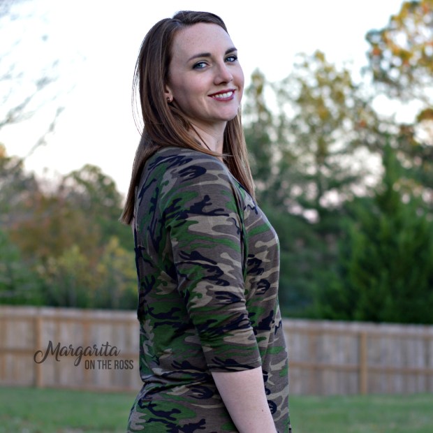 My first version for testing is a 3/4 length, curved hem tunic in a camo rayon spandex. I am pretty sure I got this camo last year at Knitpop’s Labor Day sale, so it’s been sitting in my stash for a while.