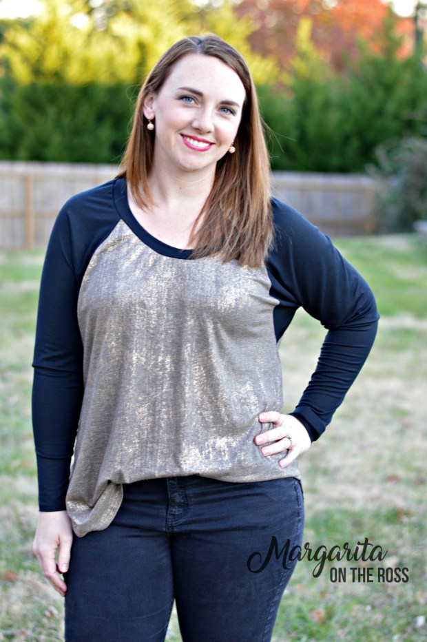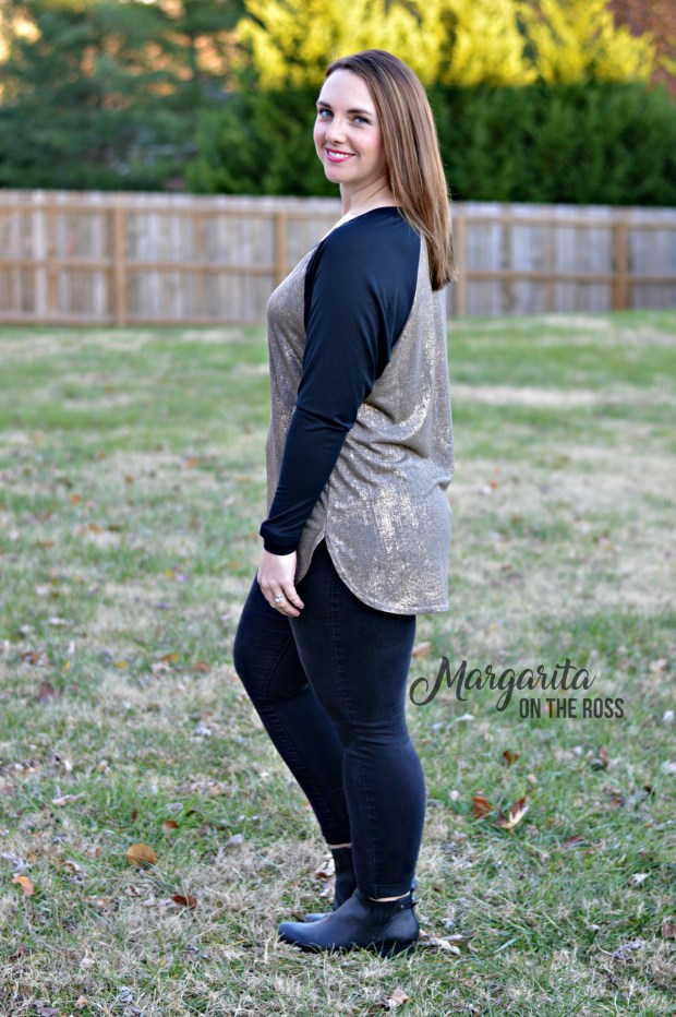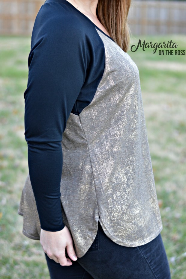 I decided to make a second version because I have had a yard of this gold shimmer for a year with no pattern in mind. I really wanted to show off the dolman raglan sleeve with two fabrics.