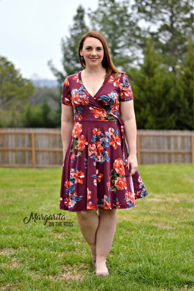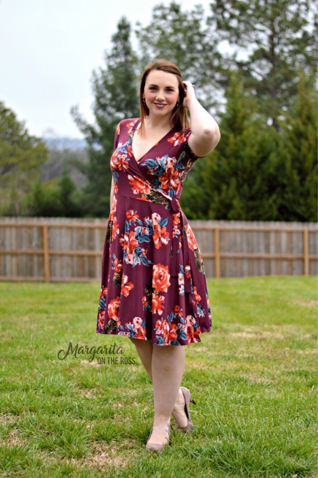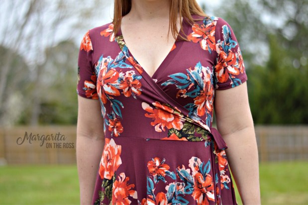 This was made using the true wrap bodice from Mama Isabel (affiliate link) with three back skirt pieces from Mama Cassie (affiliate link) making the fuller looking skirt (compared to the skirt design of Mama Isabel).