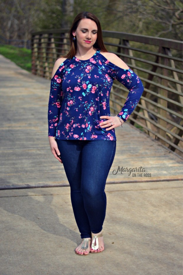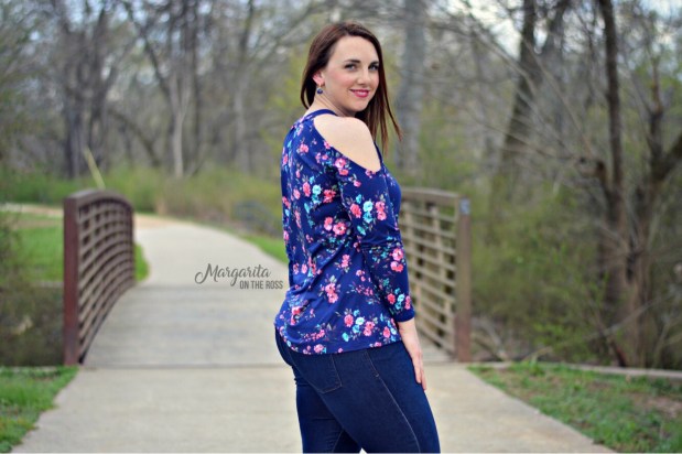 Mama Fiona (affiliate link) is a cold shoulder top or tunic that has a clean finish with the cold shoulder. Plus, there is an amazing tank option that I will show you later.