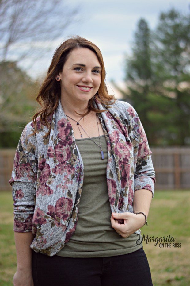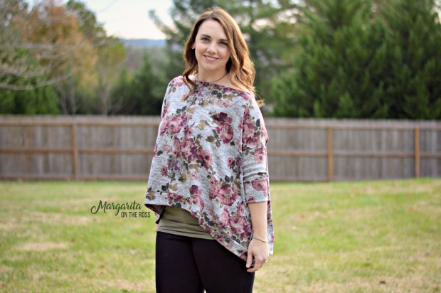 Well, after searching around, this brushed sweater knit floral was calling my name from Raspberry Creek Fabrics. Perfect as a poncho. Perfect as a cardigan.
