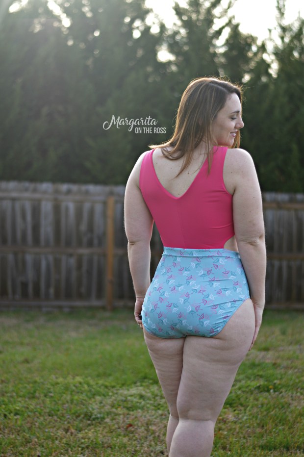 I am a big fan of using both a solid and a print with swimsuits. I had a hard time deciding which piece I wanted to be what fabric, but I am loving the solid top.